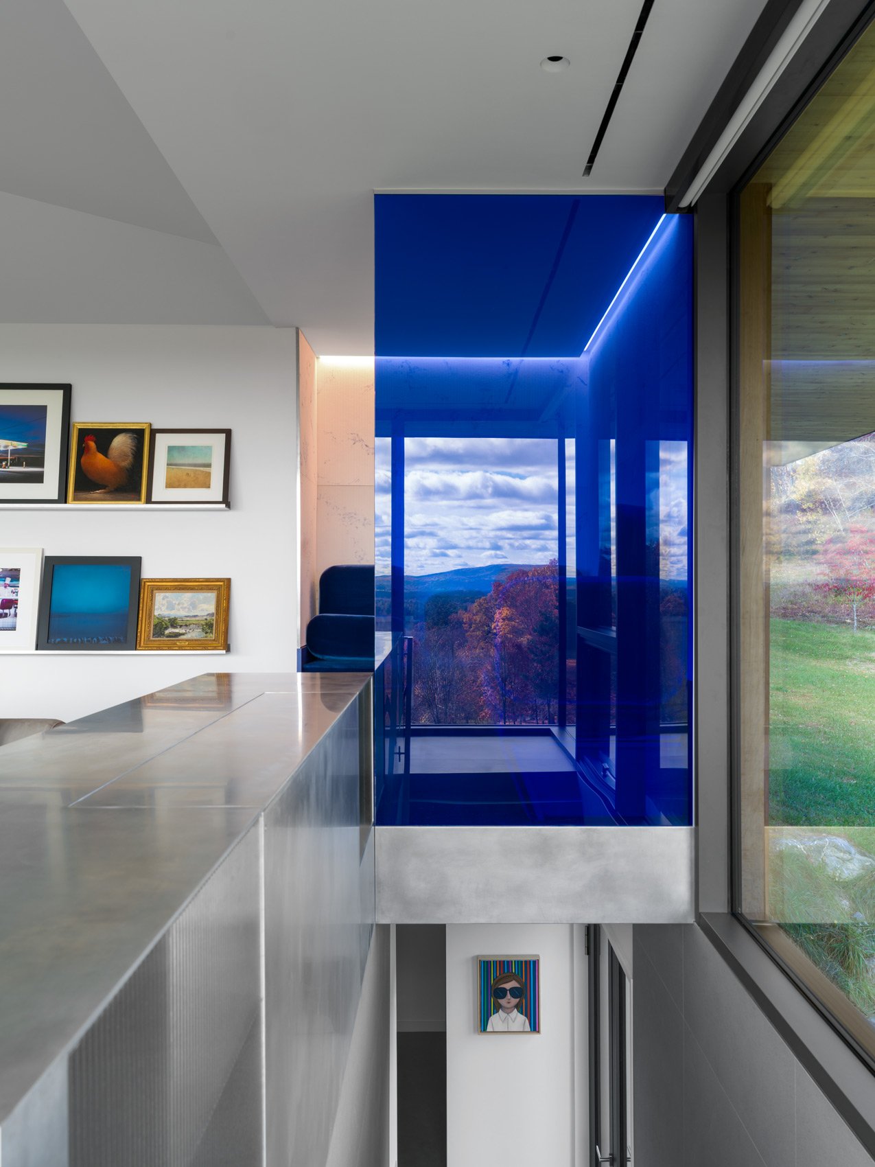 The Longview House is designed as a series of contrasts, merging the pragmatic with the fanciful. Materials traditional to the area, such as board & batten and lap wood siding, and a standing seam roof, gain a subtly contemporary edge in their treatment and juxtaposition. On the contrary, intimate, and transitional spaces are punctuated by vivid colors and surfaces.