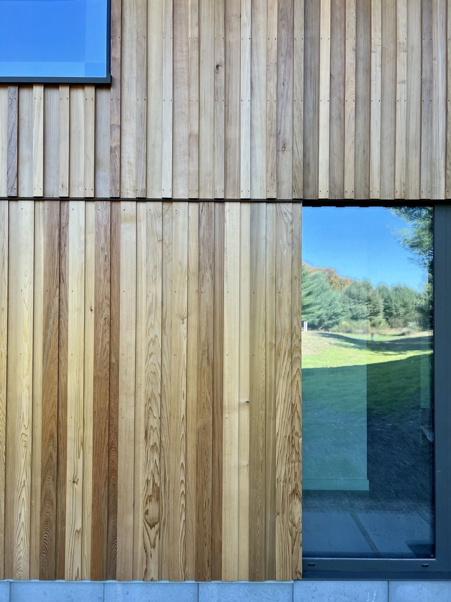 Perched on a wooded, hilly rural landscape, the house is carefully designed to present very different views, of the house and from the house, in response to the varied natural site conditions and vistas. Private rooms receive oversized picture windows, whereas the public spaces are presented with an expansive panorama of the meadows in the foreground, forest, and mountains beyond.