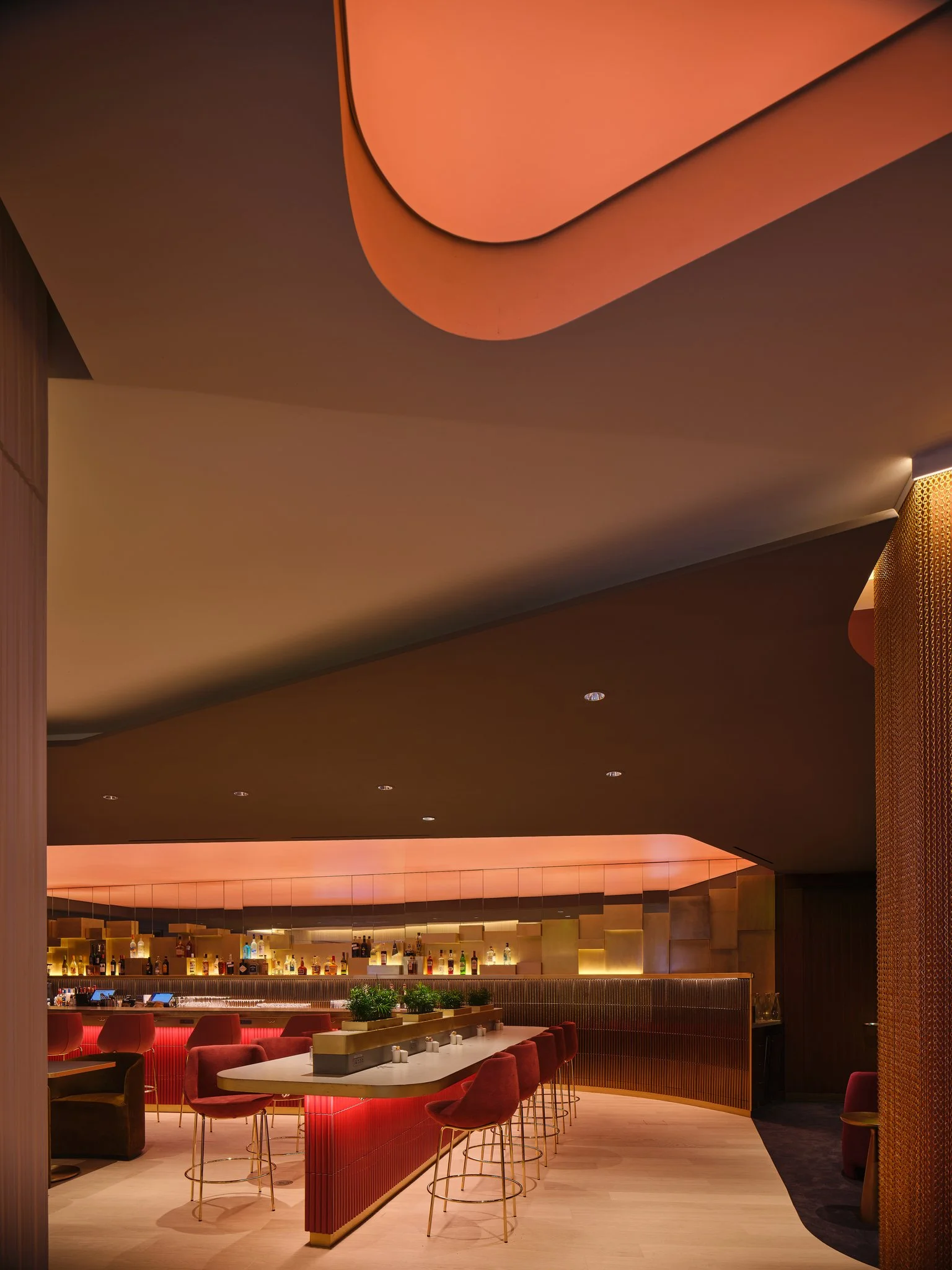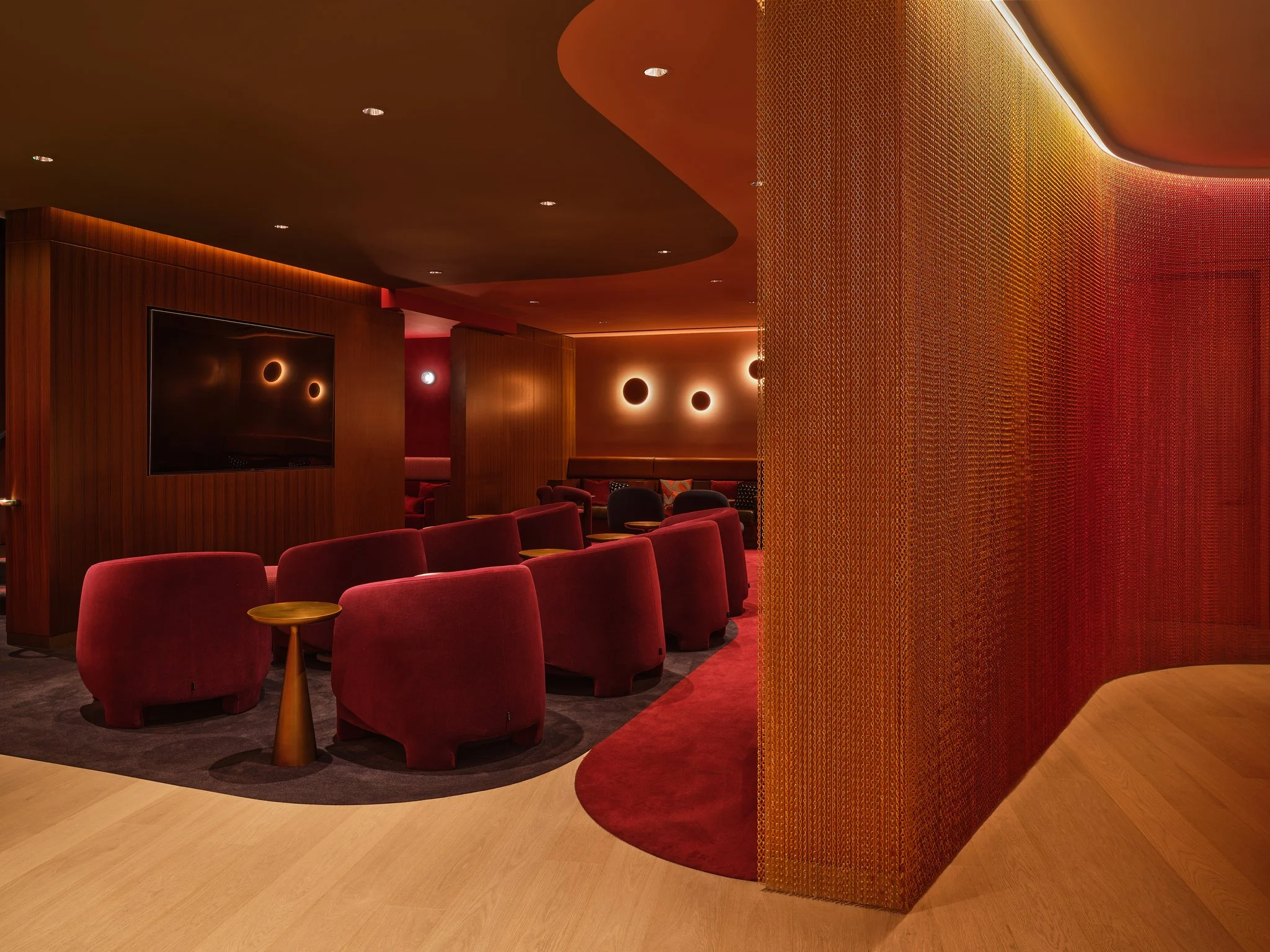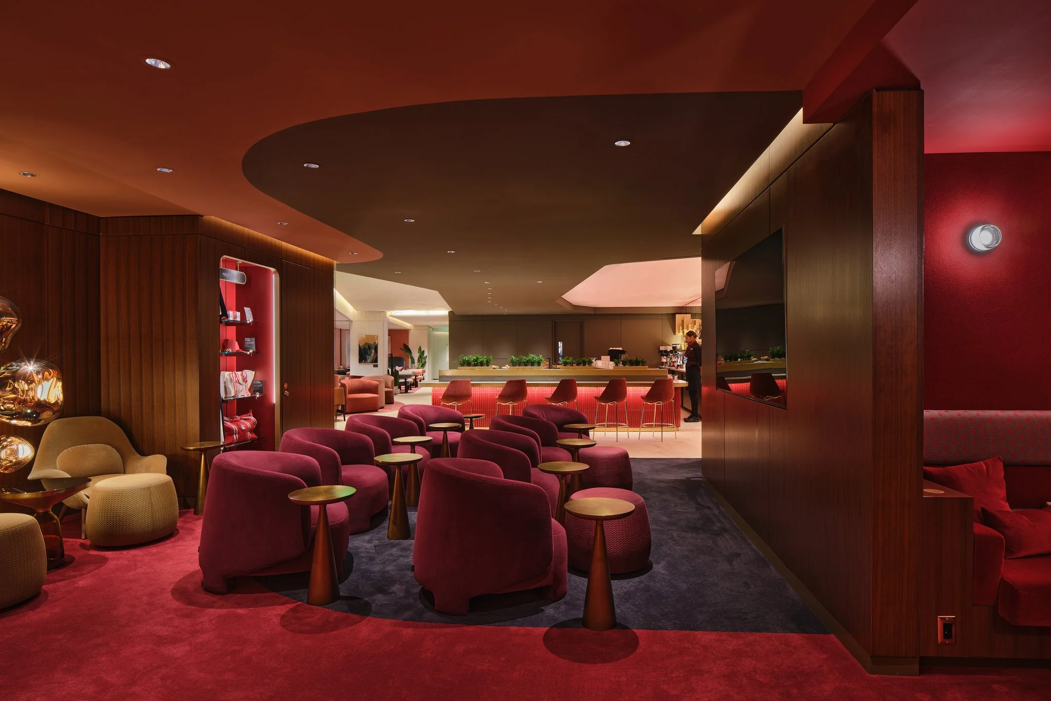 Designed as a narrative experience, the lounge moves fluidly through a series of rooms that evoke different moods and functions—offering guests a curated path from vibrant energy to calm retreat. Rather than a singular open space, Slade Architecture approached the project as a sequence of interlocking zones, each with its own architectural language, yet unified by a consistent sense of materiality, rhythm, and detail.