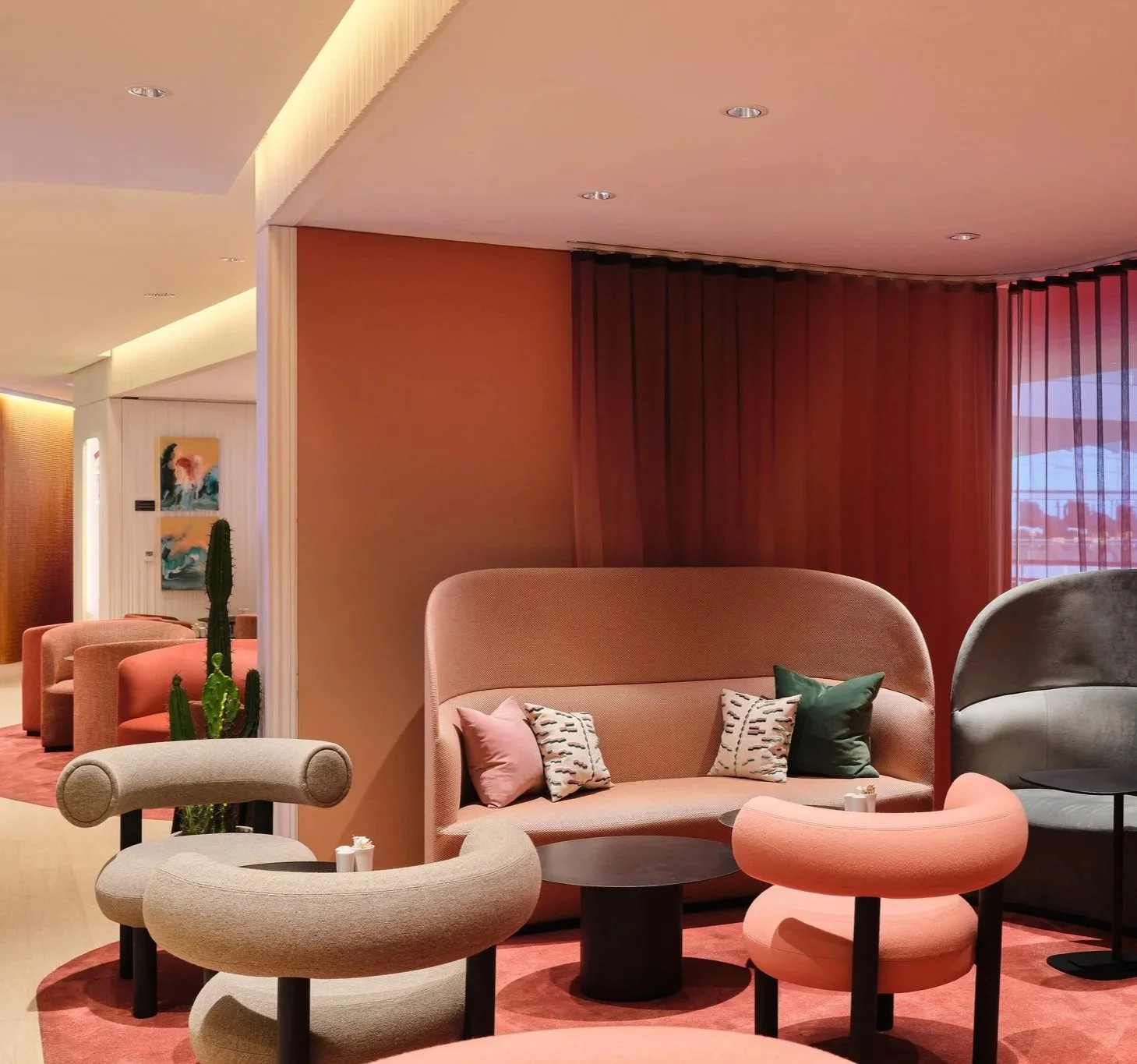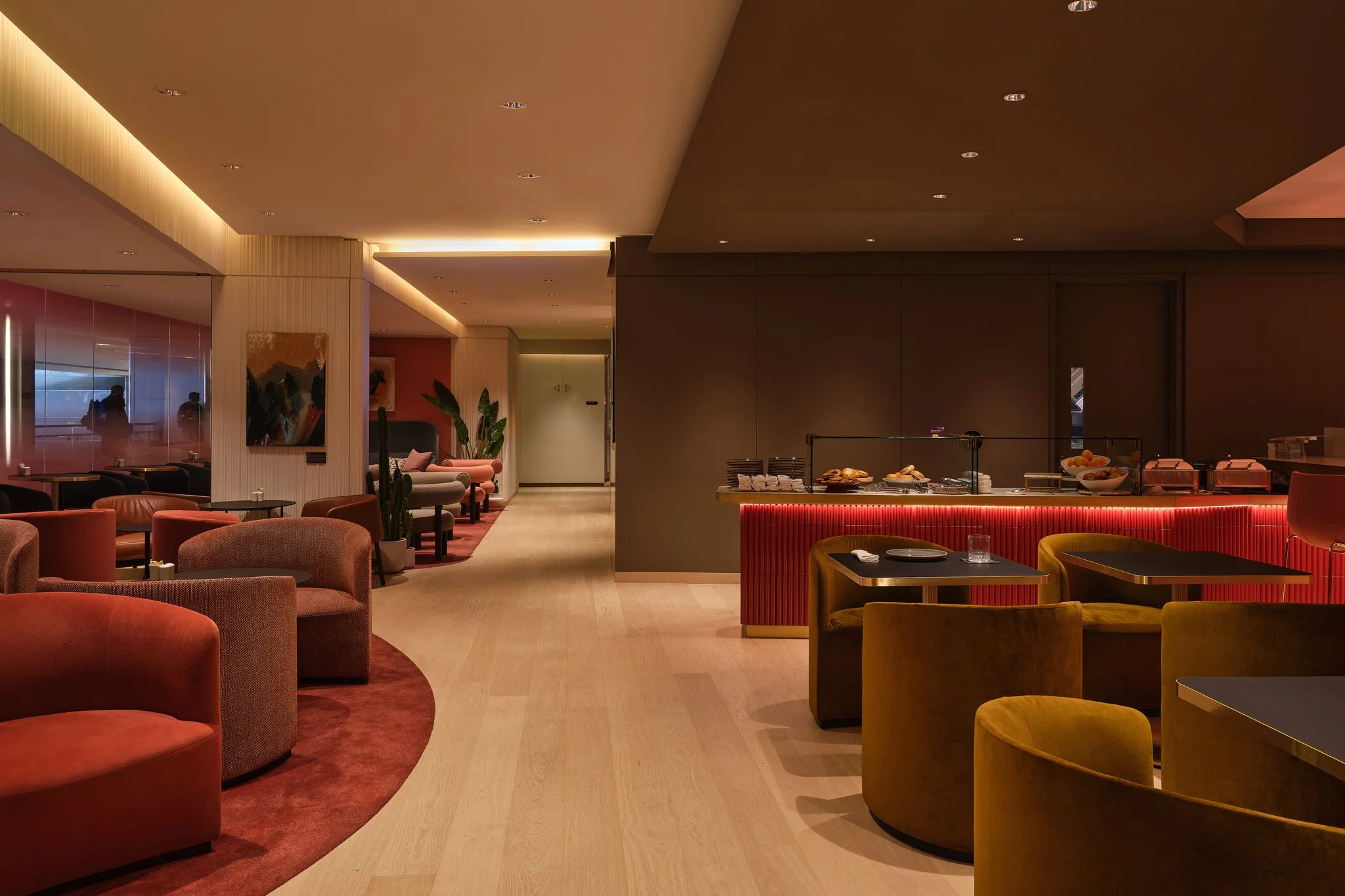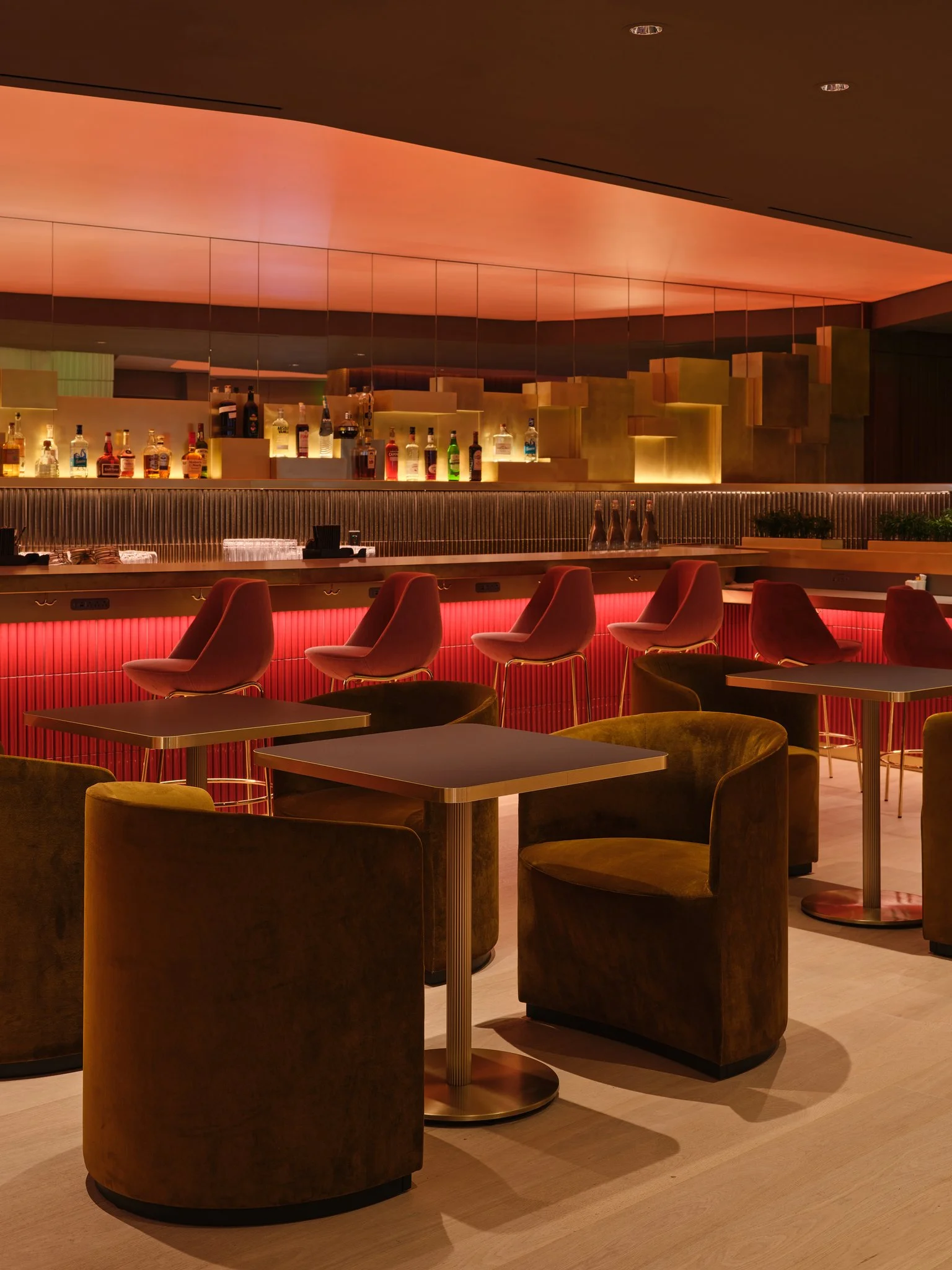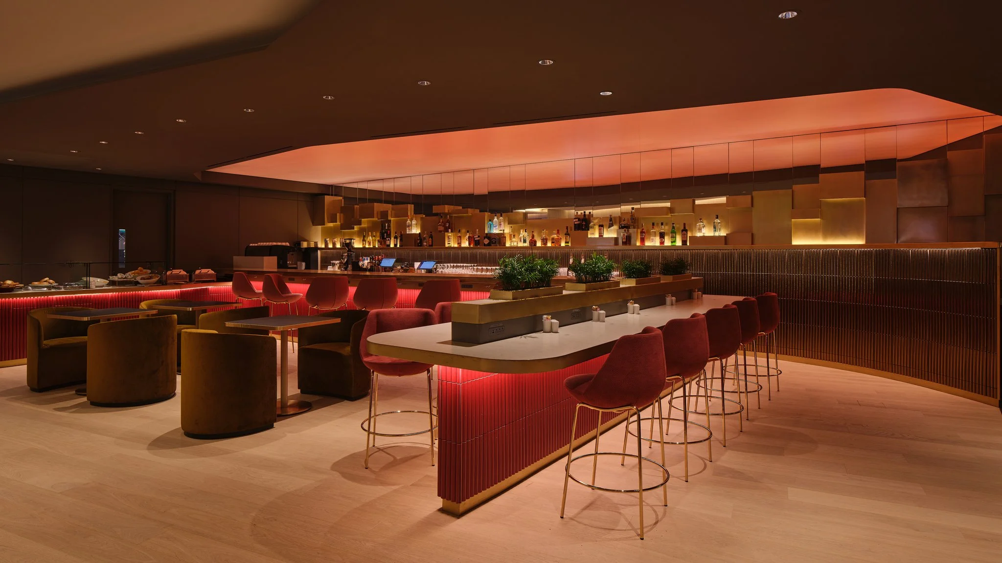 Designed as a narrative experience, the lounge moves fluidly through a series of rooms that evoke different moods and functions—offering guests a curated path from vibrant energy to calm retreat. Rather than a singular open space, Slade Architecture approached the project as a sequence of interlocking zones, each with its own architectural language, yet unified by a consistent sense of materiality, rhythm, and detail.
