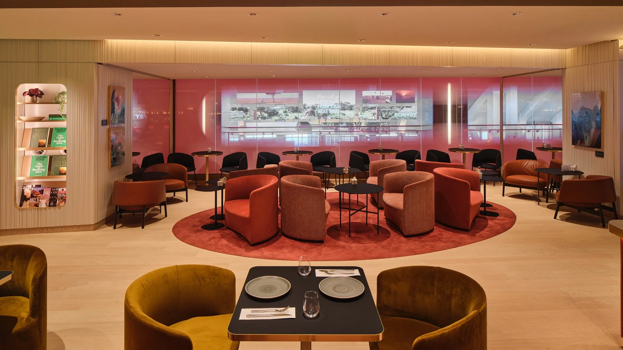 At the heart of the space is the Royal Box, a lounge-within-the-lounge that evokes British elegance with a wink—layered in rich materials and architectural gestures that nod to tradition while embracing modern irreverence. The designs emulate the eclectic heritage and witty confidence that define Virgin Atlantic’s UK roots.